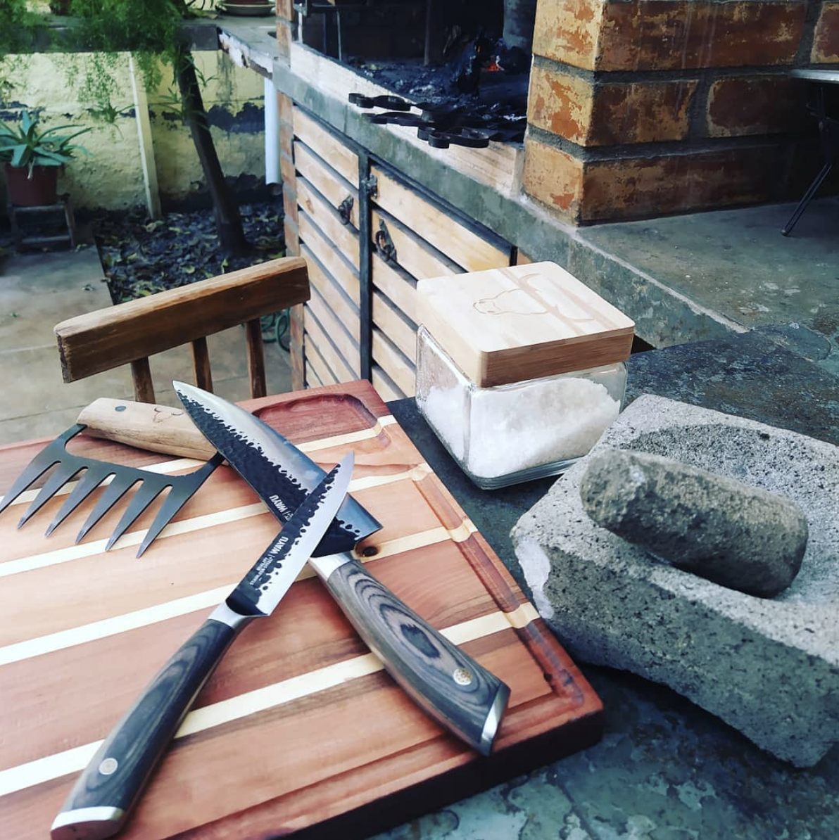 Una combinación perfecta para los amantes de la parrilla y aquellos que buscan la unión de nuestras raíces, a través de la modernidad de nuestros productos de parrilla Wayu y la artesanía de nuestro país, acercando a las personas a los artesanos de la greda procedente de Pomaire, artesanía en cuero del lago Ranco y por último Cuchillos artesanales en cacho de vacuno fabricados en la VI Región de Chile. Todo lo anterior acompañado de un buen mate y porqué no una selección de nuestros mejores vinos del país.